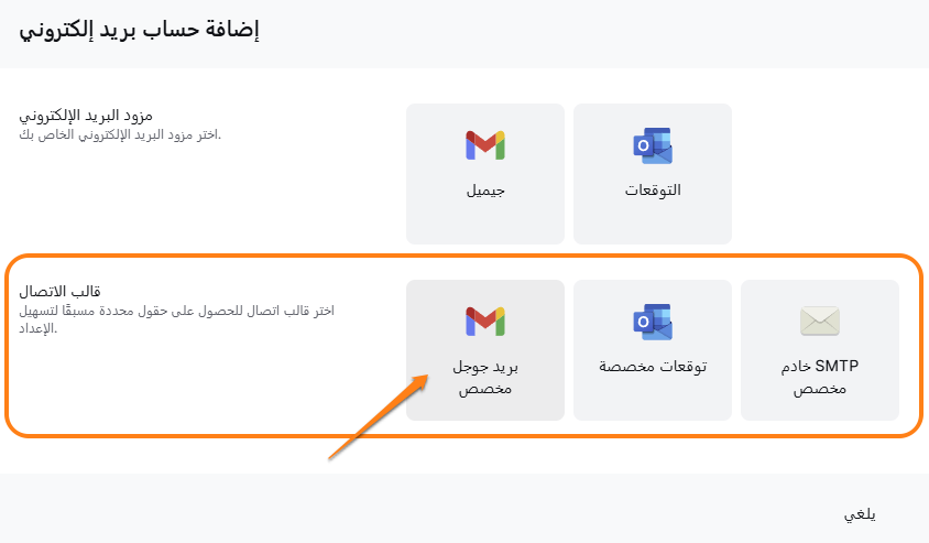 - انقر على زر الإضافة واختر Gmail مخصص.