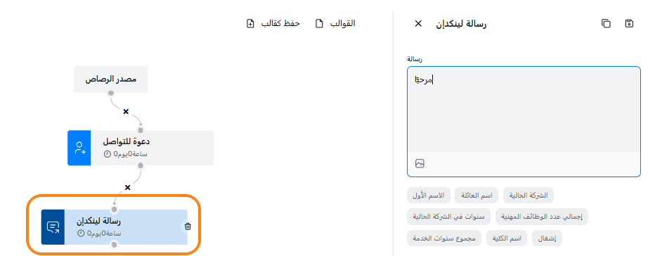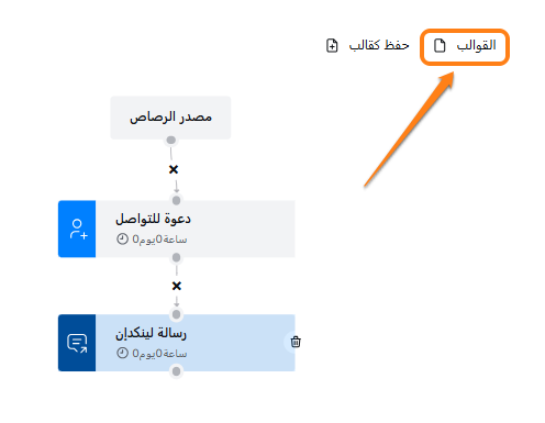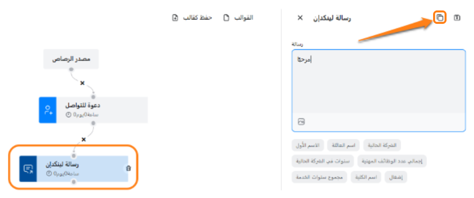 انتقل إلى الخطوة: قم بالتمرير لأسفل إلى الخطوة التي تريد نسخها. يمكن أن تكون دعوة للاتصال، رسالة، بريد داخلي أو بريد إلكتروني.