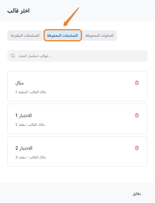 يمكنك أيضًا العثور على جميع قوالبك المحفوظة مباشرة من منشئ الحملة. فقط اضغط على "التسلسلات المحفوظة" وها هي - جميع جواهرك المحفوظة في متناول يدك.