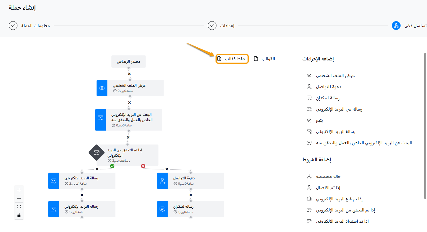 حفظ كقالب: اضغط على هذا إذا كنت تريد تحويل حملتك إلى قالب قابل لإعادة الاستخدام. إنه مثل الحفاظ على تحفتك الفنية لتتمكن من استخدامها مرارًا وتكرارًا! 🎨