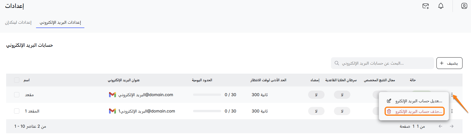 تحت علامة التبويب 'إعدادات البريد الإلكتروني'، ستجد جميع حسابات البريد الإلكتروني المتصلة بك. كلها مصطفة هنا!
