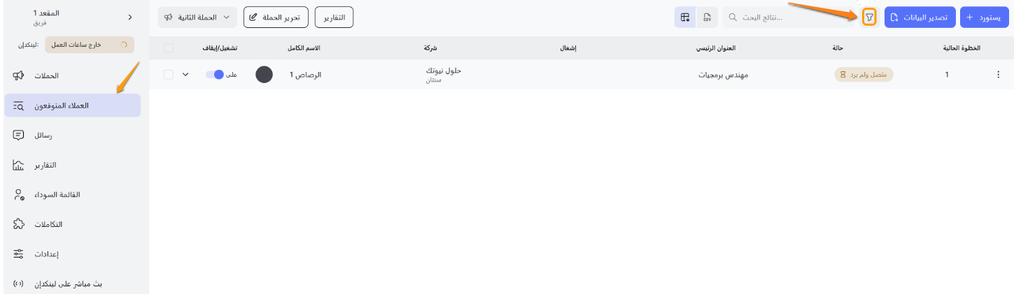توجه إلى صفحة قائمة العملاء المحتملين وابحث عن رمز القمع الصغير - هذا هو بوابتك إلى سحر التصفية!