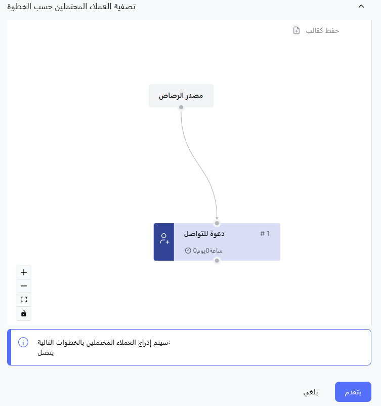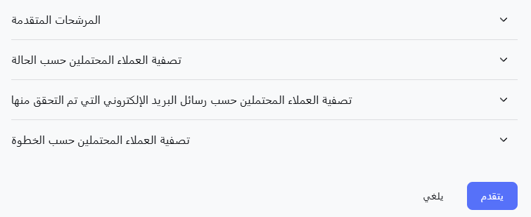 - الخطوة الحالية: ركز على العملاء المحتملين في خطوة معينة في حملتك.