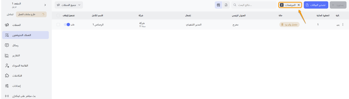 - الفلاتر المتقدمة: اجعل حياتك أسهل عن طريق تصفية العملاء المحتملين بواسطة الاسم الكامل، الشركة، المهنة، أو العنوان. 🎯