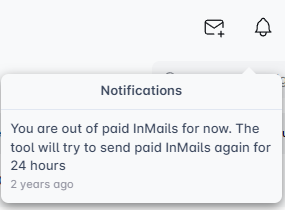 عندما تنفد InMails المدفوعة، ستقوم أيقونة الجرس بإعلامك، حتى تبقى دائمًا على اطلاع!