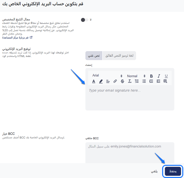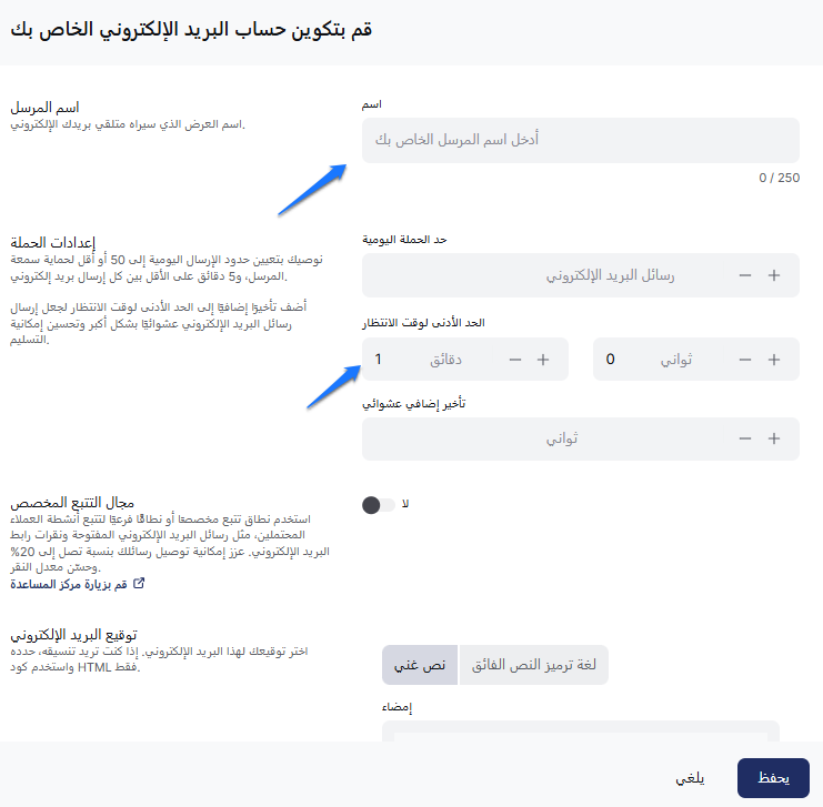 قم بإجراء التعديلات اللازمة - الاسم، الحدود اليومية، نطاق التتبع المخصص، التوقيع أو خيار BCC وها هو! 🎯 سيتم تطبيق تحديثاتك على جميع حسابات البريد الإلكتروني المحددة فورًا.