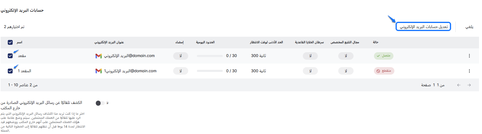بعد تحديد حساباتك، انقر على زر Edit Email Accounts. ستظهر شاشة جديدة جاهزة لتحديثاتك. 🎉 -