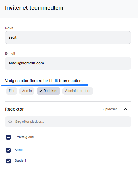I det nye vindue vælger du rollen og tildeler pladser til dit nye medlem. Det er som at caste en ny skuespiller i dit skuespil, og sikre at alle har den perfekte rolle i dit teams succes! 🎭