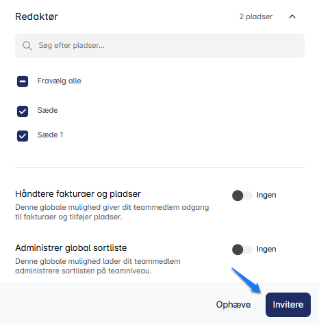 Når du har indstillet alle tilladelser, skal du klikke på 'Inviter'. Invitationen vil suse afsted til deres indbakke, og når de accepterer, er de klar til at logge ind og komme i gang med dit team! 🚀