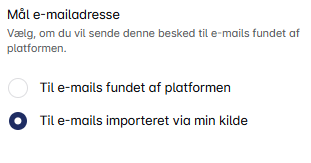 - I Email-trinnet, vælg "Emails imported by your source" som valgmulighed.
