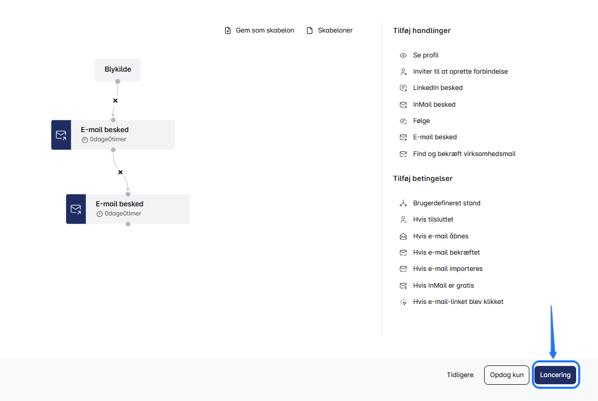 - Hvis du ikke har emails, brug funktionen "Find and Verify Business Email via LinkedIn" til at samle forretnings emails til dine leads, så du kan emaile dem inden for samme sekvens.