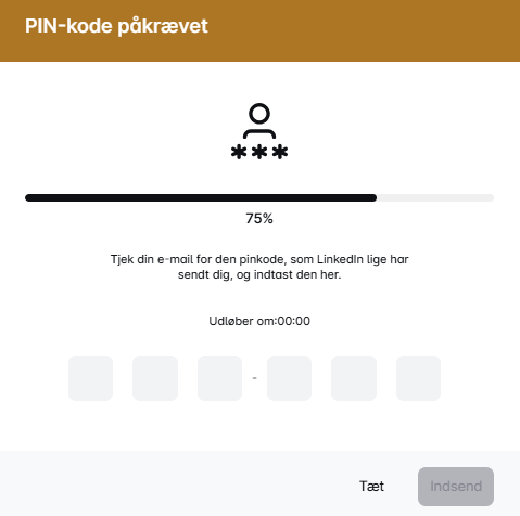 LinkedIn vil sende en PIN til den e-mailadresse, der er tilknyttet din LinkedIn-konto (den samme, du bruger med Sales Engagement Tool). Hold øje med din indbakke—PIN'en er på vej!