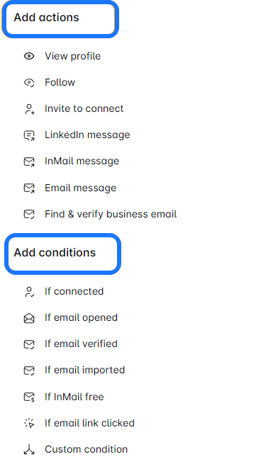 Bereit, Ihr Outreach auf das nächste Level zu bringen? Die Smart Sequence-Funktion des Sales Engagement Tool ermöglicht es Ihnen, dynamische Kampagnen Schritt für Schritt zu erstellen. Wählen Sie Ihren Kampagnentyp, erstellen Sie benutzerdefinierte Sequenzen mit Drag-and-Drop-Tools und legen Sie gezielte Aktionen und Bedingungen fest – alles, um Ihr Networking zu verbessern. Bereit, Ergebnisse zu erzielen? Beginnen Sie noch heute mit der Erstellung dynamischer Kampagnen und machen Sie jede Interaktion wertvoll! 🚀