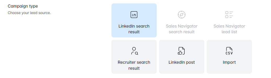 - Entscheiden Sie, wie Sie Ihre Leads finden: mit einer Such-URL oder einer CSV-Datei.