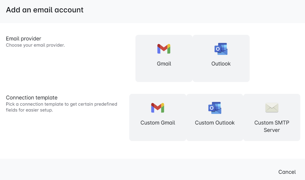 Sie können neue E-Mail-Anbieter verbinden und alle Ihre E-Mail-Kanäle an einem Ort verwalten. Egal, ob Sie Ihre Kommunikation segmentieren oder zusätzliche Kampagnen durchführen, unsere Plattform macht es einfach, die richtige E-Mail für diesen Job auszuwählen. Wählen Sie Ihren Anbieter, folgen Sie den Anweisungen und verbinden Sie mehrere E-Mails, um eine stärkere Strategie zu genießen, indem Sie Ihren E-Mail-Ruf schützen 🚀