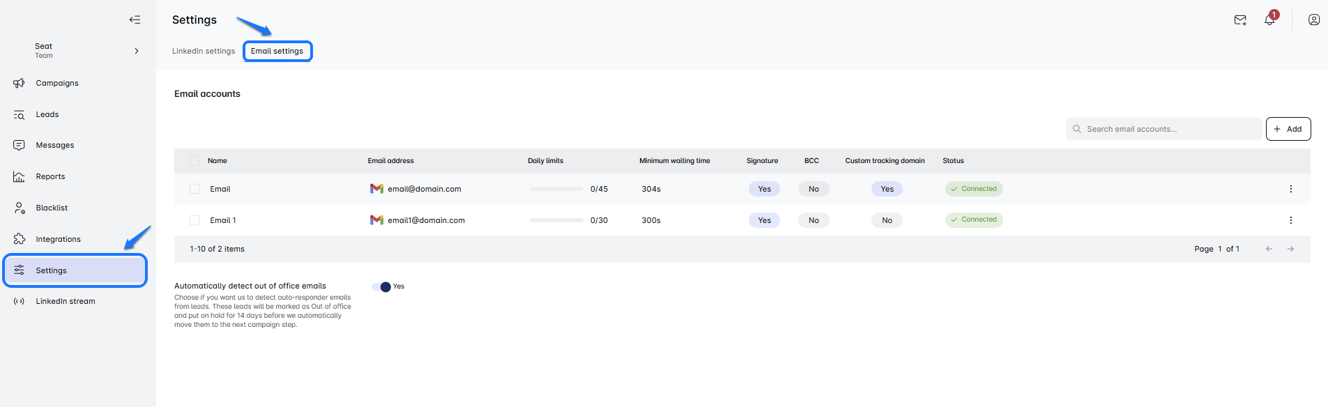 Gehe zuerst zum Einstellungen-Tab und finde den Abschnitt E-Mail-Einstellungen. Wähle die E-Mail-Konten aus, die du in großen Mengen aktualisieren möchtest. -