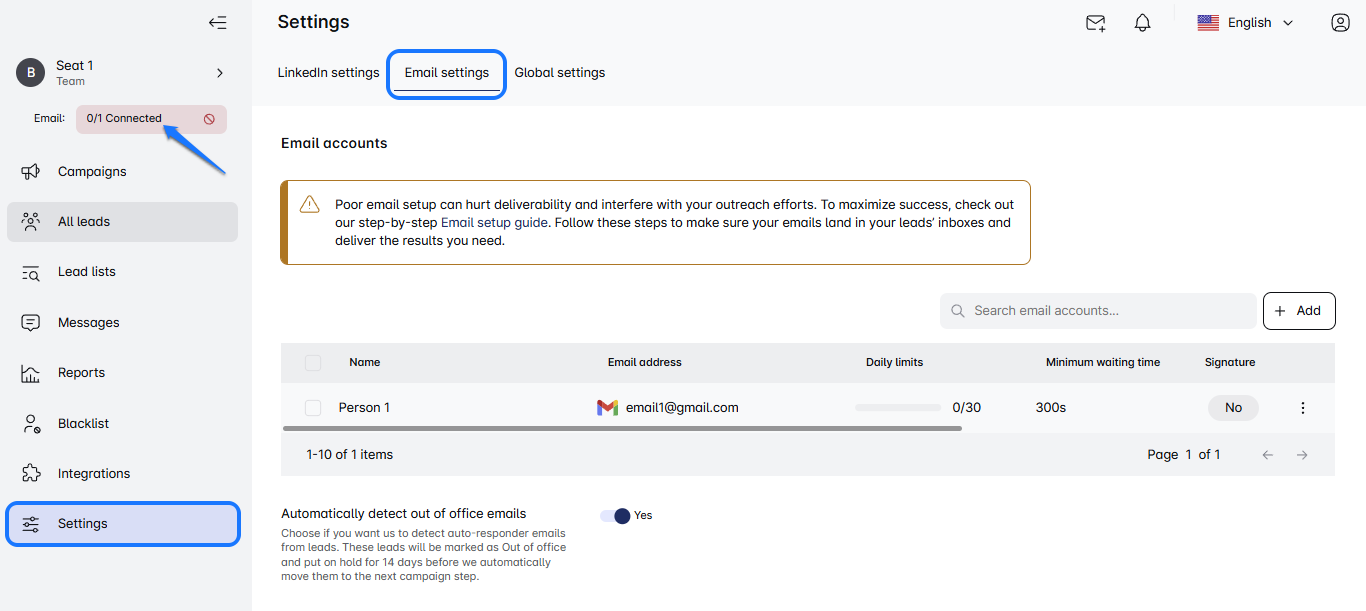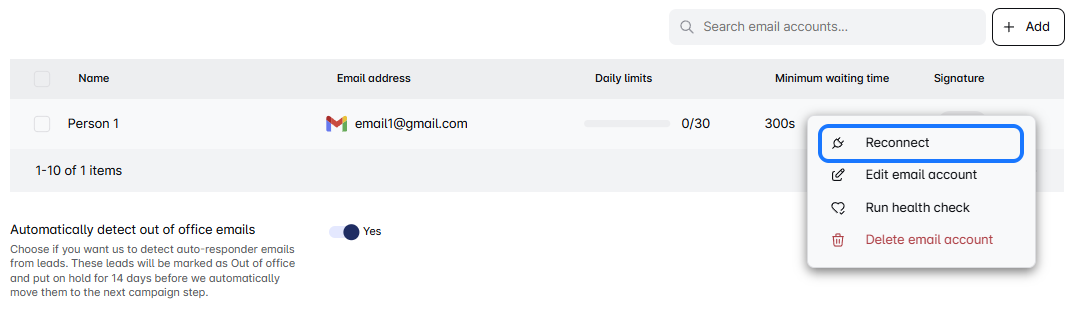 No worries since reconnecting is as quick as a faster train! 🛤️ All you have to do is to find a Reconnect button in order to re-establish the link between email and our platform. Remember to reconnect the same email for a seamless transition and always check your Email status. With everything back in sync, you’re all set to make the most of your campaigns. Enjoy the enhanced flow! 🚀