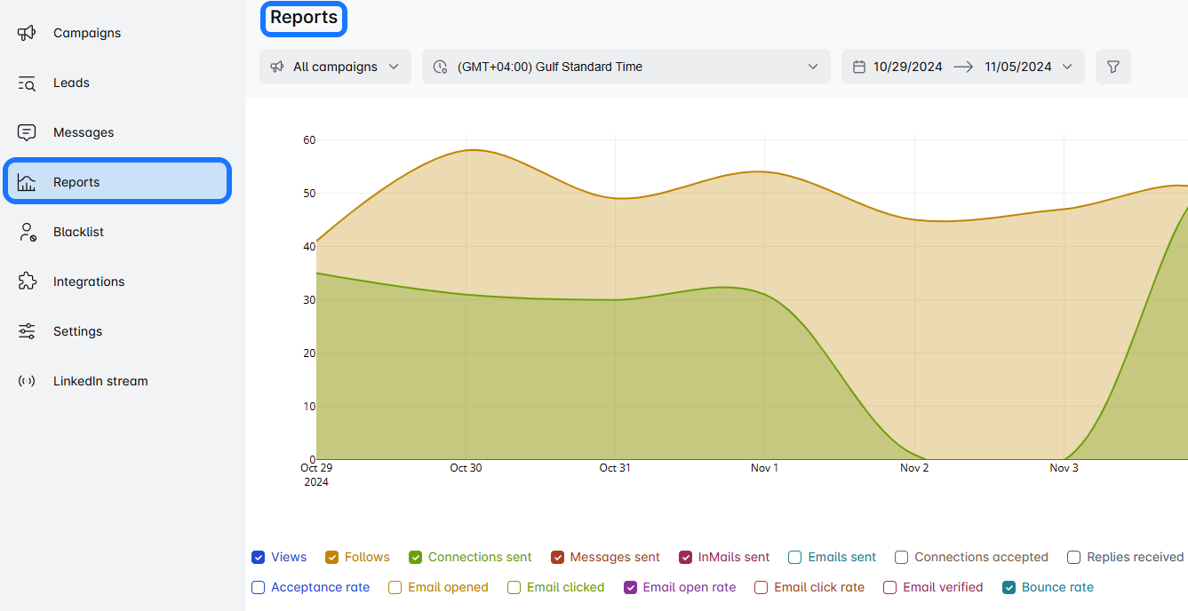 The Reports page is where all your stats and figures live. Here, you're in command—you can choose the timeframe you want to analyze (start and end date), whether it's the last week, month, or a custom range.