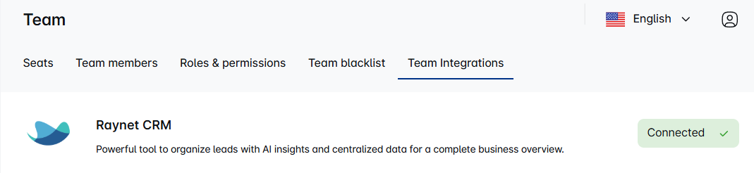 Log in to your Sales Engagement Tool app and select the team you want to connect to Raynet CRM. Integrations are configured per team, making it easy to keep data separated if you manage multiple clients or workspaces.