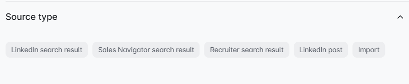 The Source Type filter lets you sort contacts based on how they were added to your list. For example: LinkedIn search, Sales Navigator search, Recruiter search, LinkedIn post, CSV Import 📥