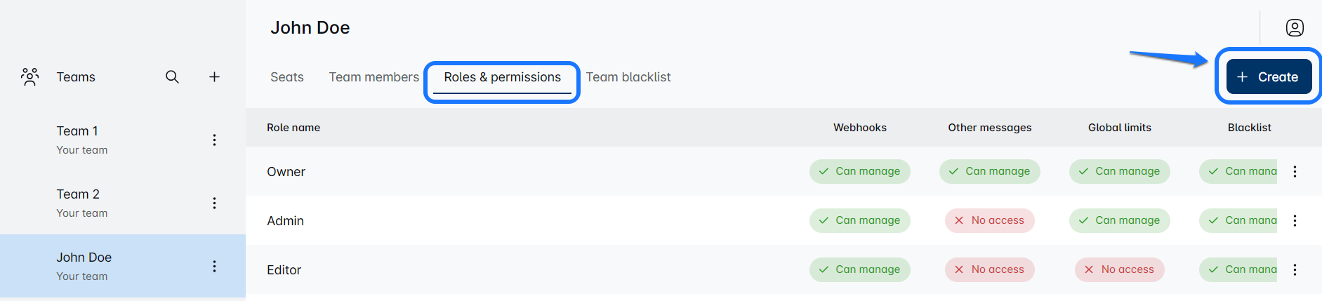 Dirígete a 'Roles y Permisos', haz clic en 'Crear' y selecciona permisos como gestión de campañas, manejo de mensajes o lista negra. Incluso puedes configurar roles solo de visualización para acceso de observación. Con Roles Personalizados, puedes asegurarte de que cada miembro del equipo tenga las herramientas y el nivel de acceso adecuados, mejorando la eficiencia y la organización. ¡Disfruta de la flexibilidad para dar forma a los roles del equipo según tus especificaciones exactas!✈️🌟