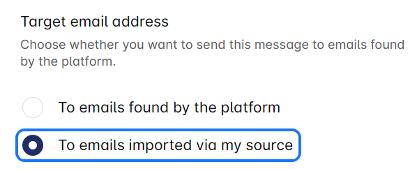 - En el paso de Email, selecciona "Emails imported by your source" como la opción.