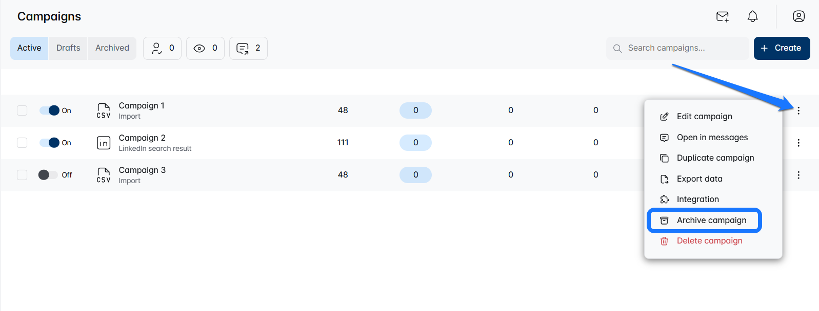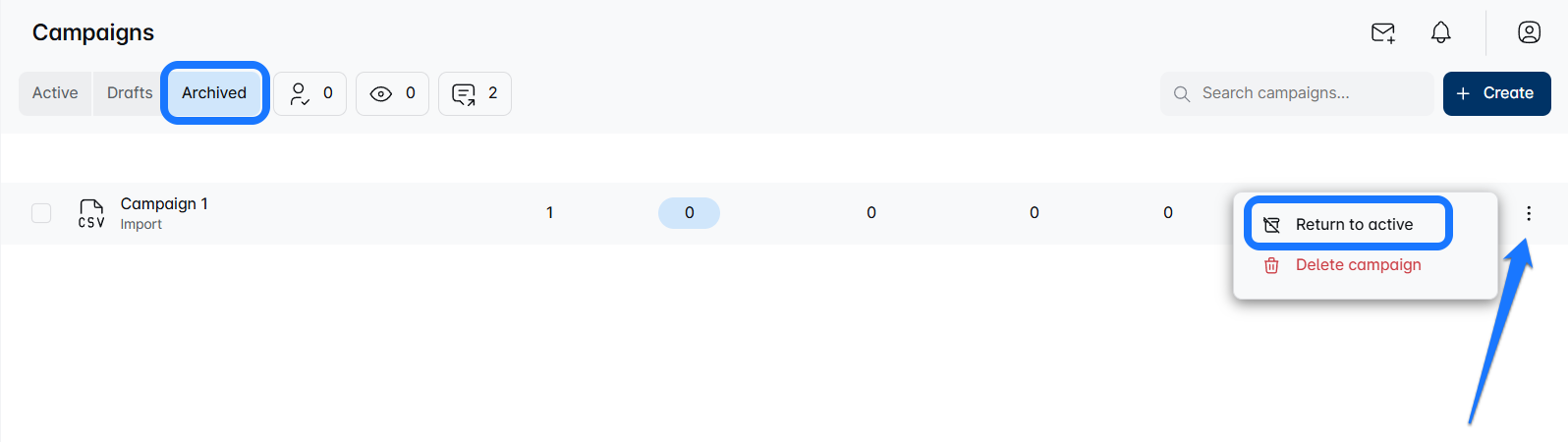 Haz clic en el menú de tres puntos de la campaña archivada.