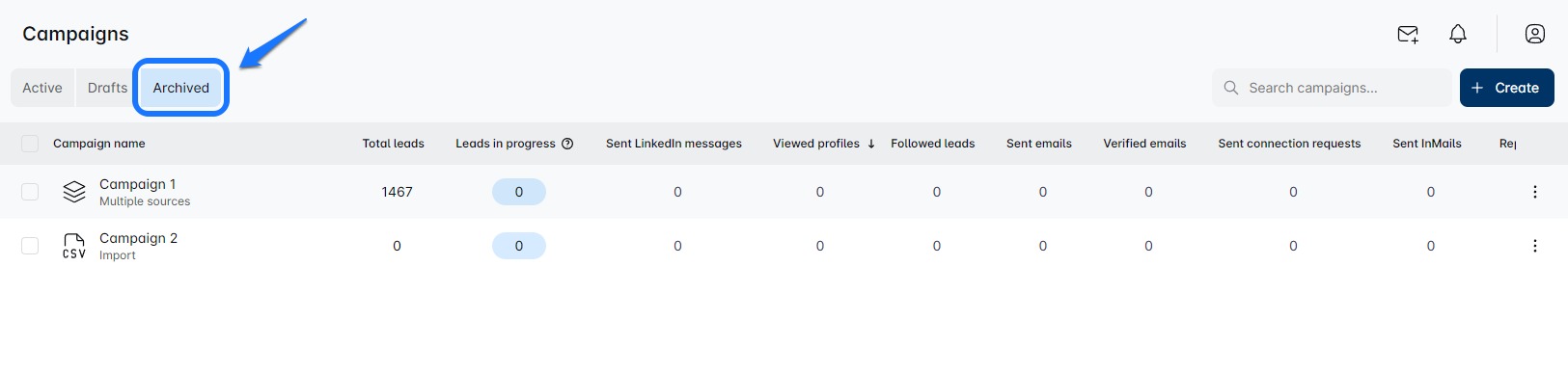 Simplemente cambia a la vista de 'Campañas Archivadas'. Ahora verás todas tus campañas cuidadosamente guardadas.