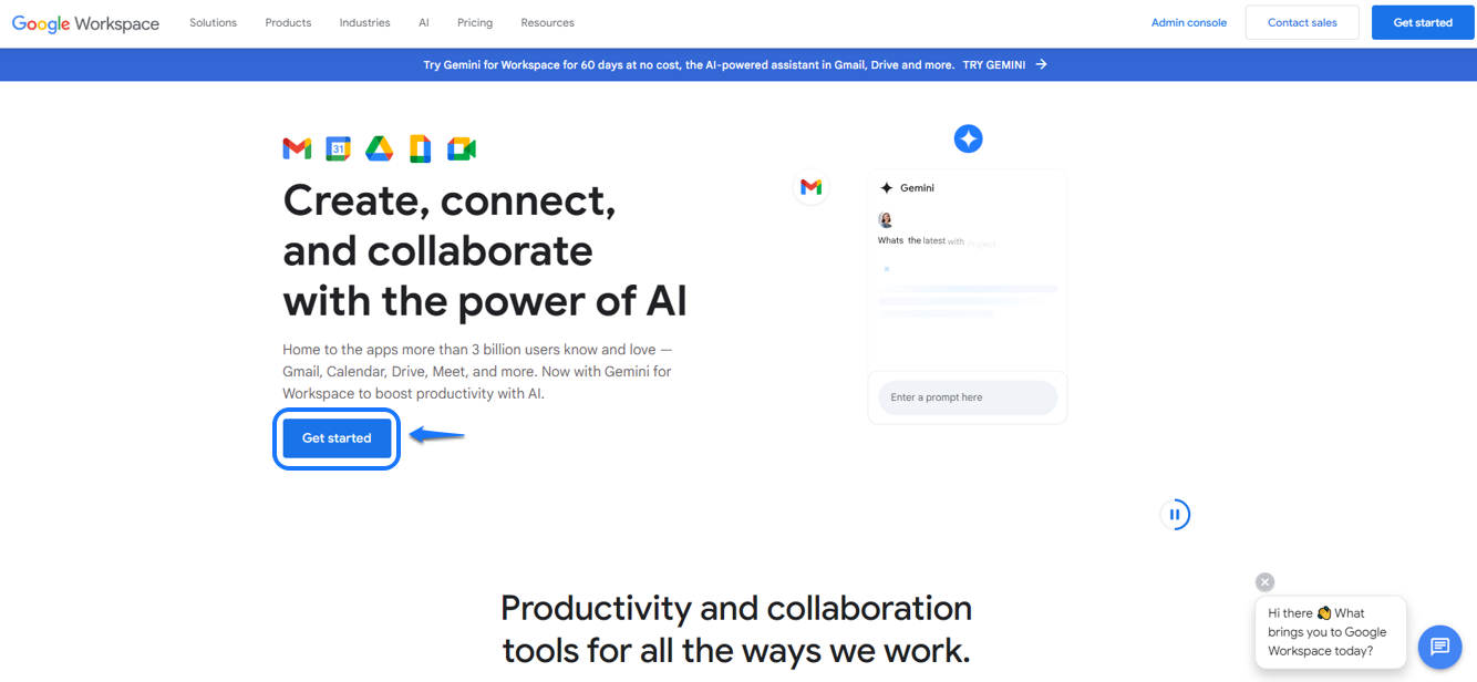 Para esta guía, usaremos Google Workspace, y el flujo es similar a todos los demás espacios de trabajo. Para comenzar, haz clic en "Comenzar" y agrega la información de registro.