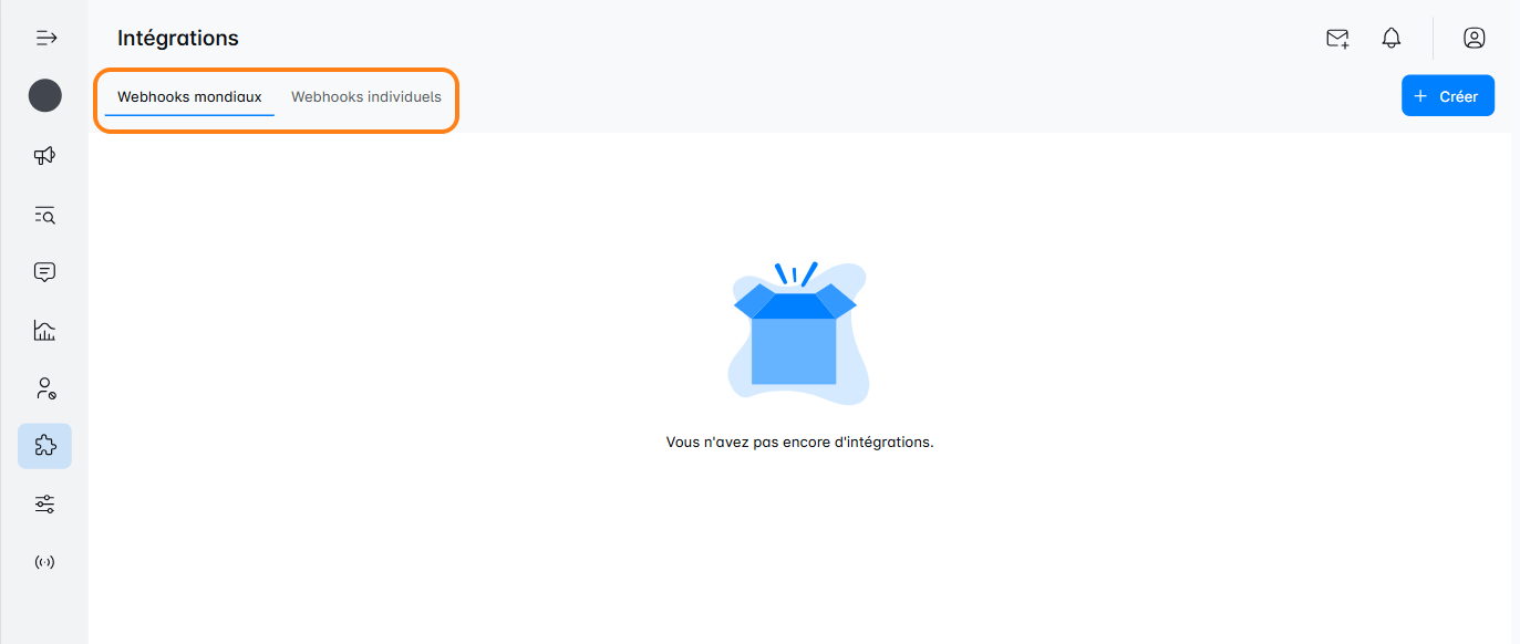 Basculez entre les Webhooks Globaux et Individuels en cliquant sur les onglets :