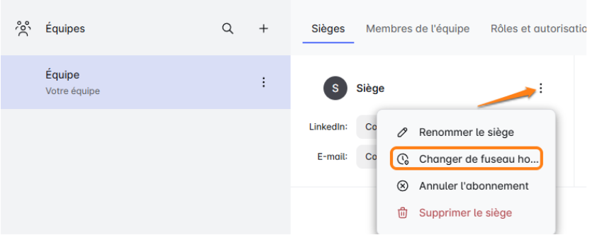 - Trouvez un siège pour lequel vous souhaitez changer le fuseau horaire et cherchez les trois points en haut à droite—c'est votre porte d'entrée vers la personnalisation. Cliquez dessus pour déverrouiller un monde d'options !