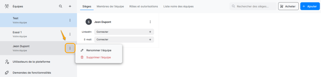 - Transférer des crédits de siège : Souhaitez-vous ajouter plus de sièges à votre équipe ? C'est ici que vous pouvez le faire.