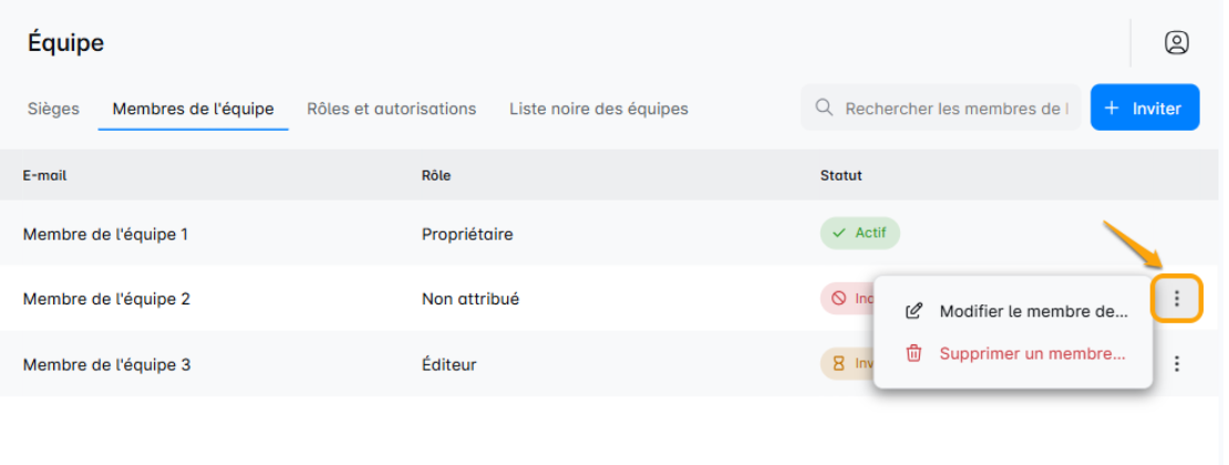 Gestion des membres de l'équipe :