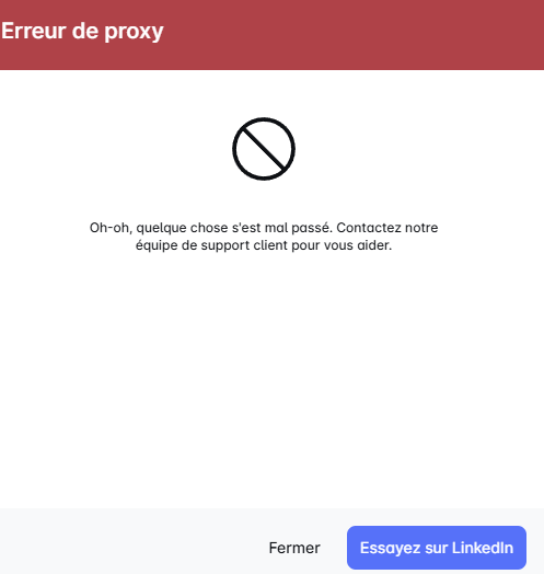 Vous rencontrez un problème de proxy lors de l'intégration ? Si les proxys ne sont pas disponibles pour votre pays ou si vous avez sélectionné le mauvais, cliquez sur l'icône de chat pour vous connecter avec notre équipe de support. Nous sommes là pour vous aider à continuer sans encombre. Profitez de votre expérience avec Sales Engagement Tool ! 🚀