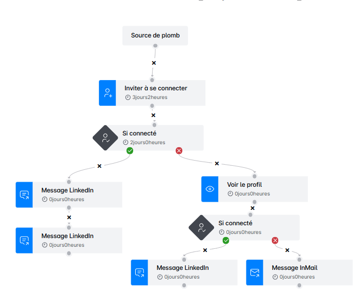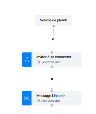 Remarque : Si un prospect accepte votre demande de connexion avant le délai (par exemple, 1 jour ou 2 heures), il passera immédiatement à l'étape Message, sans attendre la fin du délai.