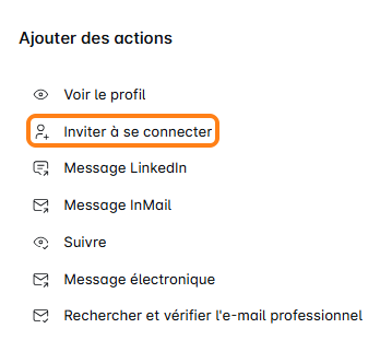 Inviter à se connecter est une action LinkedIn où vous invitez des prospects à rejoindre votre réseau. Vous pouvez envoyer des invitations à vos connexions de 2e et 3e degré, mais pour des raisons de sécurité, nous recommandons d'envoyer des invitations uniquement à vos contacts de 2e degré.