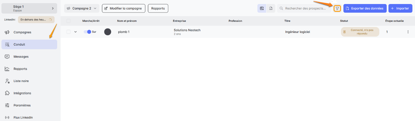Rendez-vous sur votre page Liste des prospects et cherchez la petite icĂŽne d'entonnoir â c'est votre porte d'entrĂ©e vers la magie du filtrage !