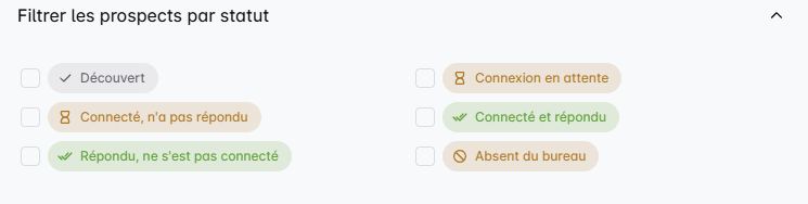 - Statuts : Mélangez et associez plusieurs statuts pour obtenir une liste plus affinée.