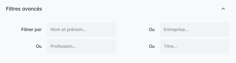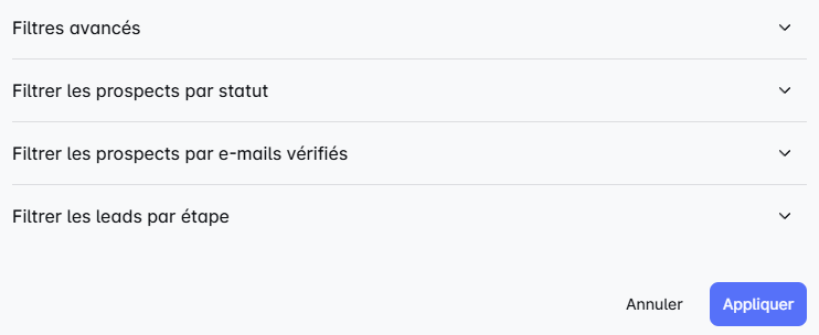 - Filtres avancĂ©s : Facilitez-vous la vie en filtrant les prospects par Nom complet, Entreprise, Profession ou Titre. đŻ