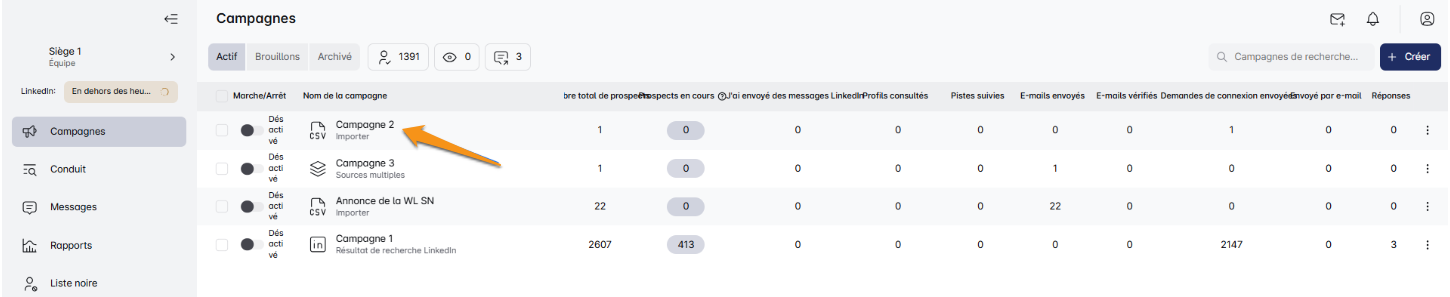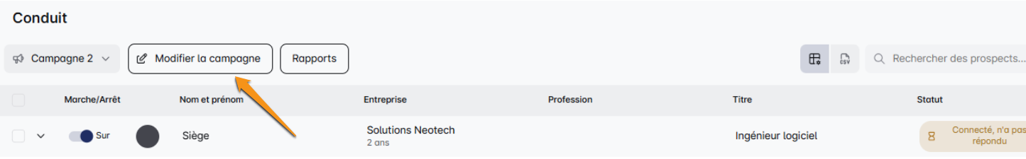 - Ensuite, cliquez sur le bouton Modifier la campagne. Une fois votre campagne ouverte, sélectionnez l'étape spécifique où vous souhaitez ajuster le délai.