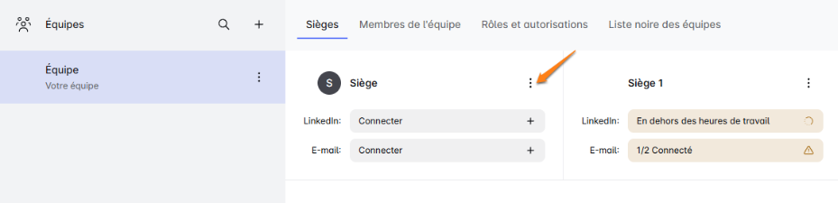 Tout d'abord, rendez-vous sur votre tableau de bord d'équipe. Une fois là-bas, cherchez le menu à trois points (vous le trouverez juste à côté du nom de votre siège). 👀