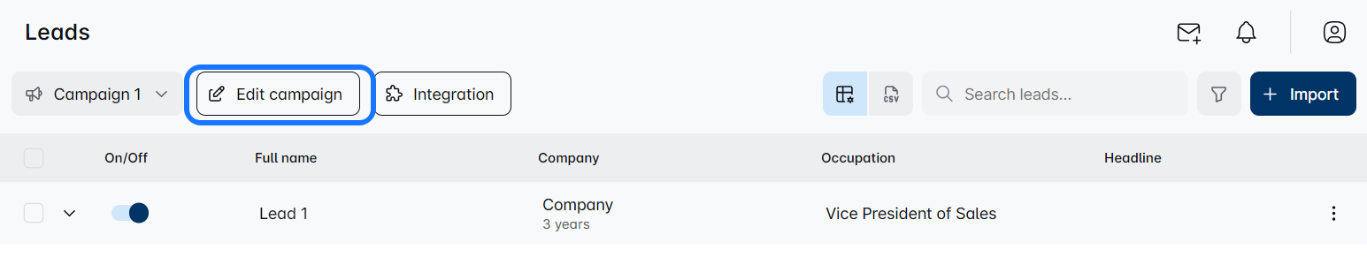- उस अभियान को खोजें जहां आप नए लीड्स चाहते हैं।