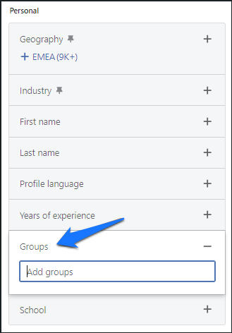 - फ़िल्टर विकल्पों के माध्यम से स्क्रॉल करें जब तक कि आप "Group Members" फ़िल्टर को न ढूंढ लें। यह सुविधा आपको उन व्यक्तियों को लक्षित करने की अनुमति देती है जो विशिष्ट LinkedIn समूहों के सदस्य हैं।
