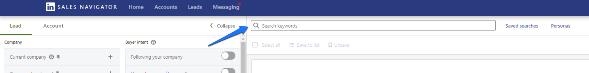 - अपने Sales Navigator डैशबोर्ड के शीर्ष पर "खोज" बार पर क्लिक करें।