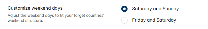 आप यह भी चुन सकते हैं कि कौन से सप्ताहांत दिन आपके लक्षित दर्शकों के शेड्यूल के साथ मेल खाते हैं! 🌍