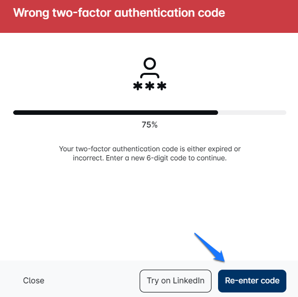 क्या आप दो-कारक प्रमाणीकरण त्रुटि का सामना कर रहे हैं? यह तब हो सकता है जब 2FA कोड समाप्त हो जाता है या गलत तरीके से दर्ज किया जाता है। बस कोड पुनः दर्ज करें पर क्लिक करें। याद रखें, कोड 1 मिनट के लिए मान्य है। अपनी यात्रा का आनंद लें! 🚀💙