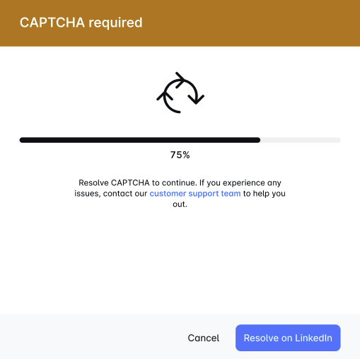 LinkedIn सेटअप करते समय CAPTCHA का सामना कर रहे हैं? 🧩 बस "Try by yourself" पर क्लिक करें, पहेली को हल करें, और सेटअप पूरा करने के लिए PIN दर्ज करें। हम आपके Sales Engagement Tool अनुभव को सहज बनाने के लिए समर्पित हैं। आनंद लें! 🚀
