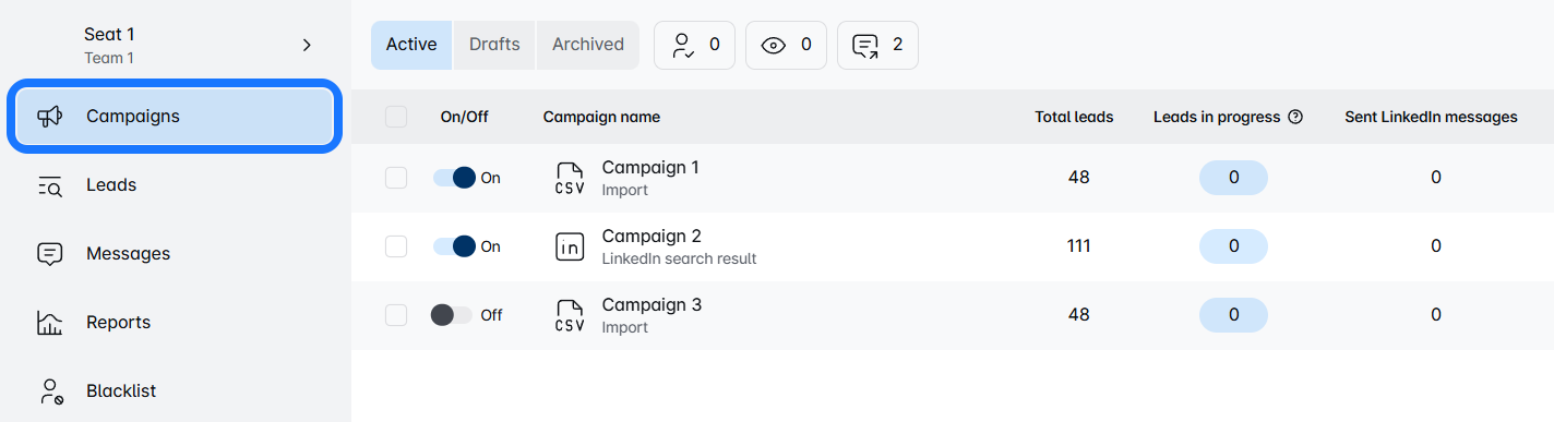 अपने Sales Engagement Tool खाते में लॉग इन करके Campaign Dashboard पर जाएं।