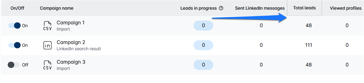 अब, बस प्रत्येक डेटा विजेट पर क्लिक करें (जैसे, कुल लीड्स, देखी गई प्रोफाइल्स, भेजे गए कनेक्शन्स...) और इसे खींचें उस स्थान पर जहाँ आप इसे प्रदर्शित करना चाहते हैं। सबसे महत्वपूर्ण जानकारी को बाईं ओर रखें, कम महत्वपूर्ण डेटा को दाईं ओर ले जाएँ