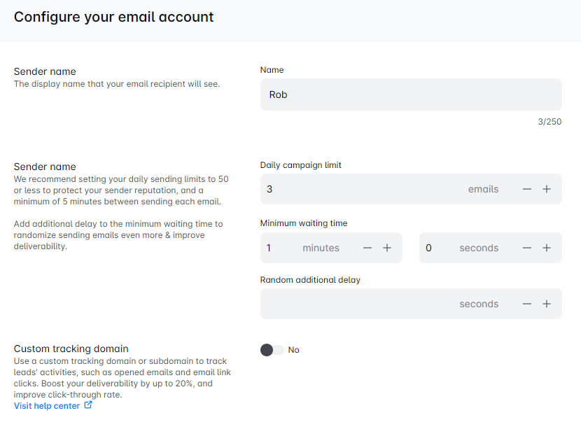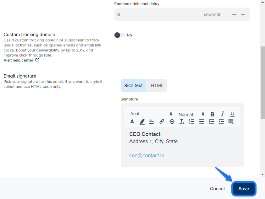 यहां, आप प्रेषक का नाम बदल सकते हैं, अभियान सेटिंग्स समायोजित कर सकते हैं, एक कस्टम ट्रैकिंग डोमेन सेट कर सकते हैं, अपने हस्ताक्षर को अपडेट कर सकते हैं, और यहां तक कि बीसीसी प्राप्तकर्ताओं को भी जोड़ सकते हैं। 🖊️